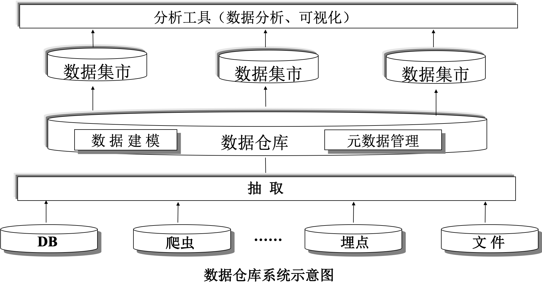 数据仓库是一个面向主题的、集成的、相对稳定的且反映历史变化的数据集合,用于支持管理人员的决策